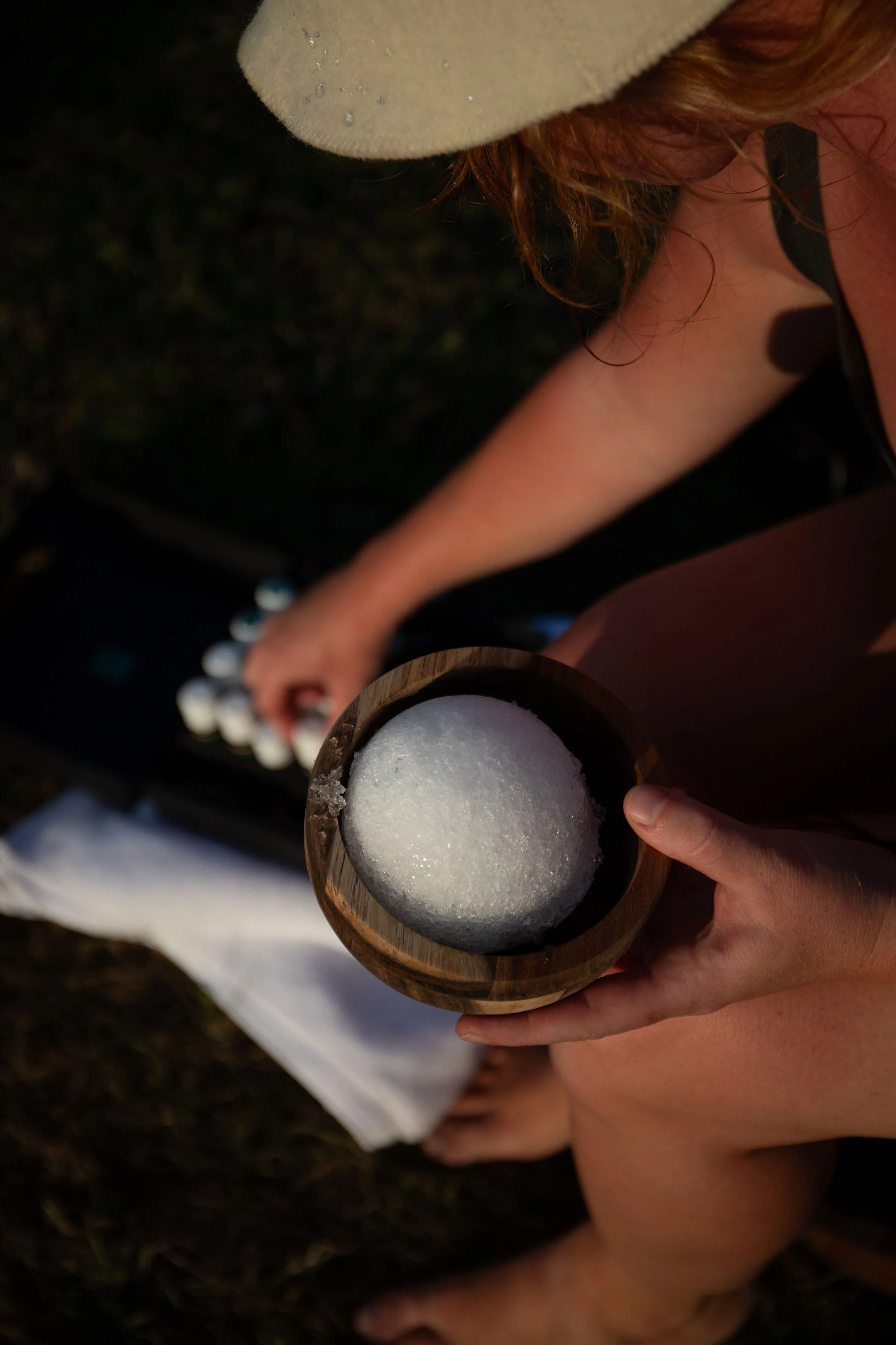 Aromatherapy steam from hand-crafted Aufguss ice balls